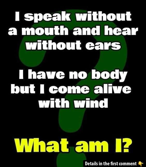 Here’s a riddle that will really make you think: “I speak without a mouth, I hear without ears, I have no body but I come alive with wind. What am I?” Sounds tricky, right? Take a moment to solve it and share your answer in the comments below! Ready to challenge yourself? Let’s see who can crack it first!