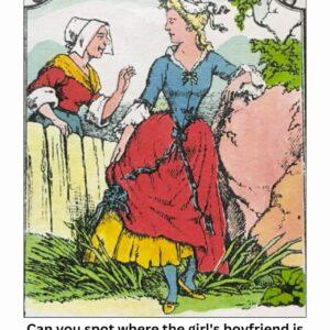 Think you have perfect vision? Put your eyes to the test with this charming vintage illustration of a young woman chatting over a fence. Hidden somewhere in…