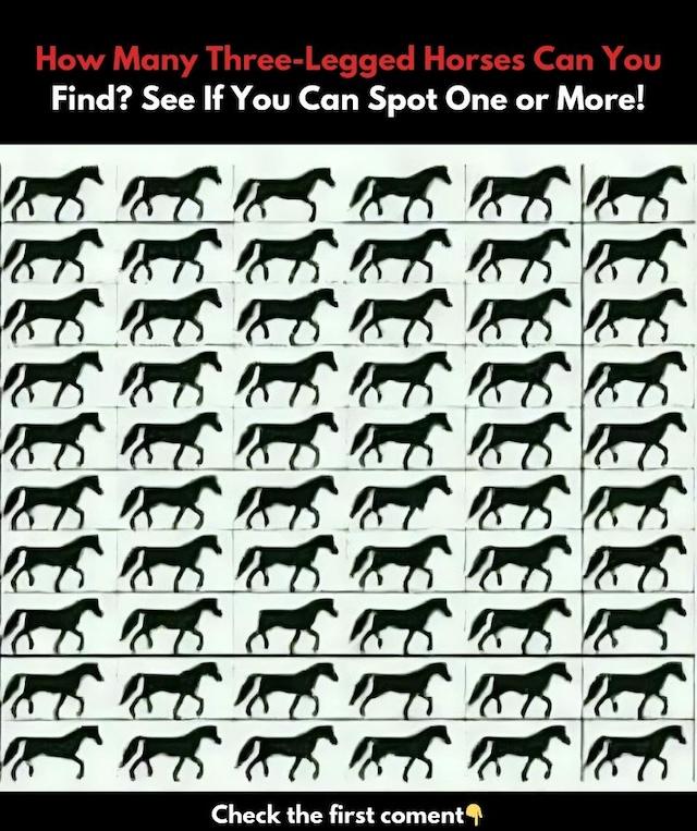 Think you’ve got sharp eyes and a keen sense of detail? Here’s a challenge that only a few can master: How many three-legged horses can you spot…