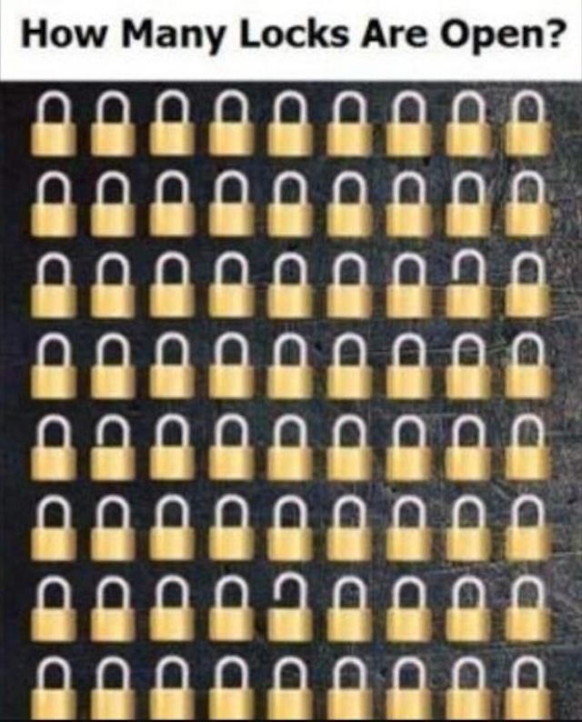 Ever come across a puzzle that looks easy at first but turns out to be trickier than expected? Today, we’re putting your attention to detail to the test with a seemingly simple question: “How many locks are open?” Look closely at the image of padlocks. How many do you think are unlocked? Give it a shot and share your answer below!